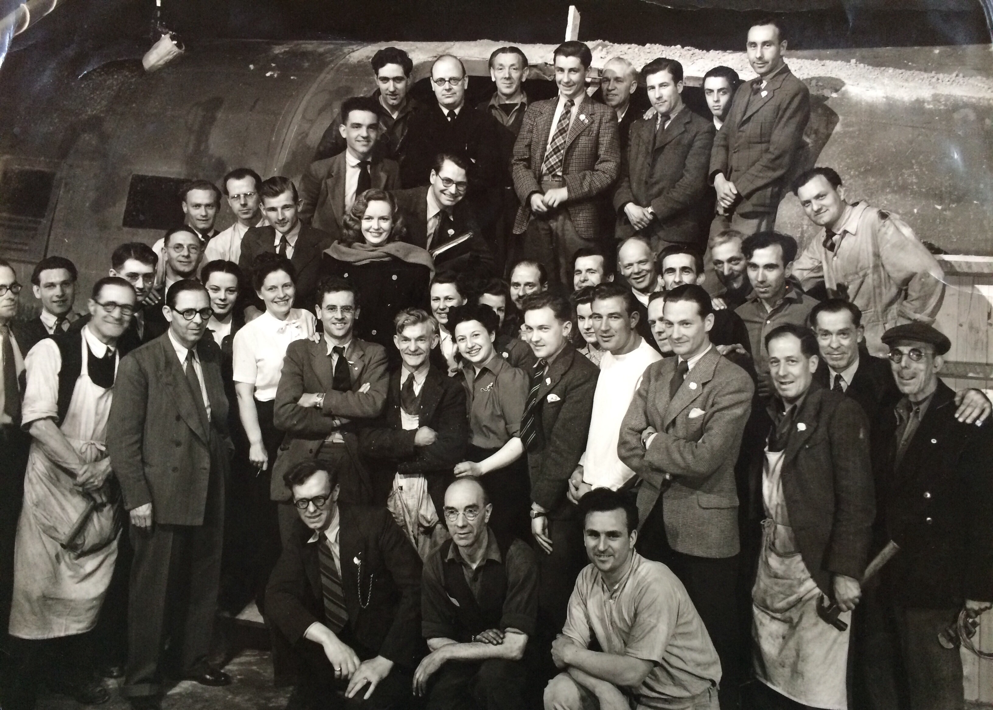 The photograph is one of several we have of the various productions she worked on, along with her production diaries and notes. This one is of the whole crew and the actor Phyllis Calvert (with the scarf) who made Broken Journey – a film about survivors of an air crash in the Alps – shot at Pinewood studios and on location in the French Alps by Gainsborough Pictures in 1948. It was directed by Ken Annakin (who later directed Those Magnificent Men In Their Flying Machines).