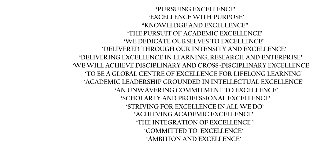 The university in question established a project with the aim of developing more practice-based arts provision within the university, establishing more links between the university and external artists and arts organisations, and to increase the links between the subject areas within the creative and performing arts programmes within the university. The project rapidly established a reputation within the university for taking risks and for having a different way of looking at things. It was also known for having a different way of talking about things and even a different way of naming things, for example, modules. A critical factor in the project’s ability to forge an innovative path was that its director had been brought in from outside academia, and was relatively and refreshingly unencumbered by things like history and precedence and the engrooved customs, practices and discourses of the institution.