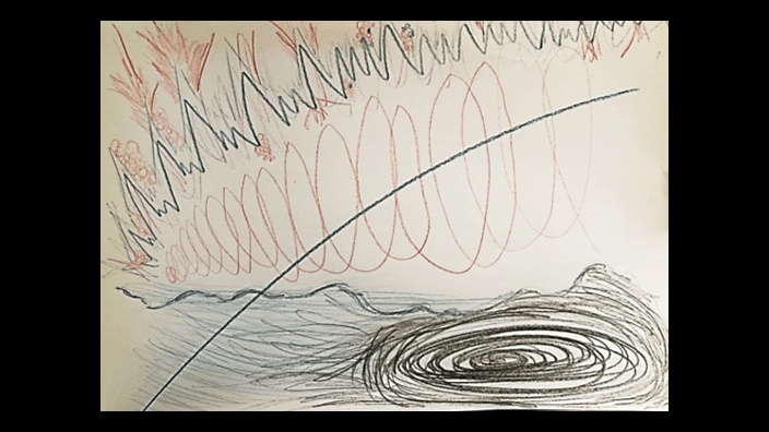 During Covid, the workshops went online and participants were asked to create their drawings then upload them together with their short commentary. These are just a few, published with permission, of the responses to the task.
