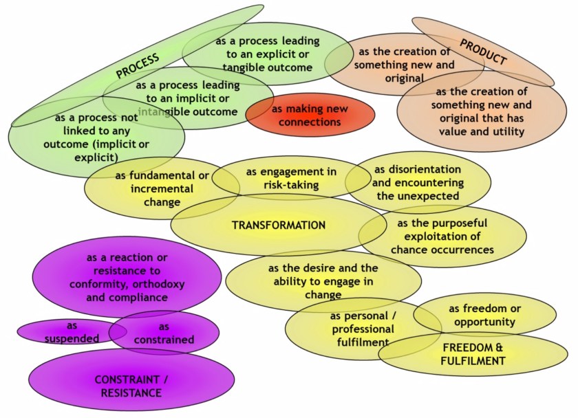 As well as the development and identification of these five categories (later to be reduced to three – but that’s another story), a number of significant outcomes and observations sprang from the research. It was clear that university teachers experienced creativity in learning and teaching in complex and rich ways, and certainly the ones I interviewed – once they got going – exhibited great enthusiasm for, and an interest in, creativity.